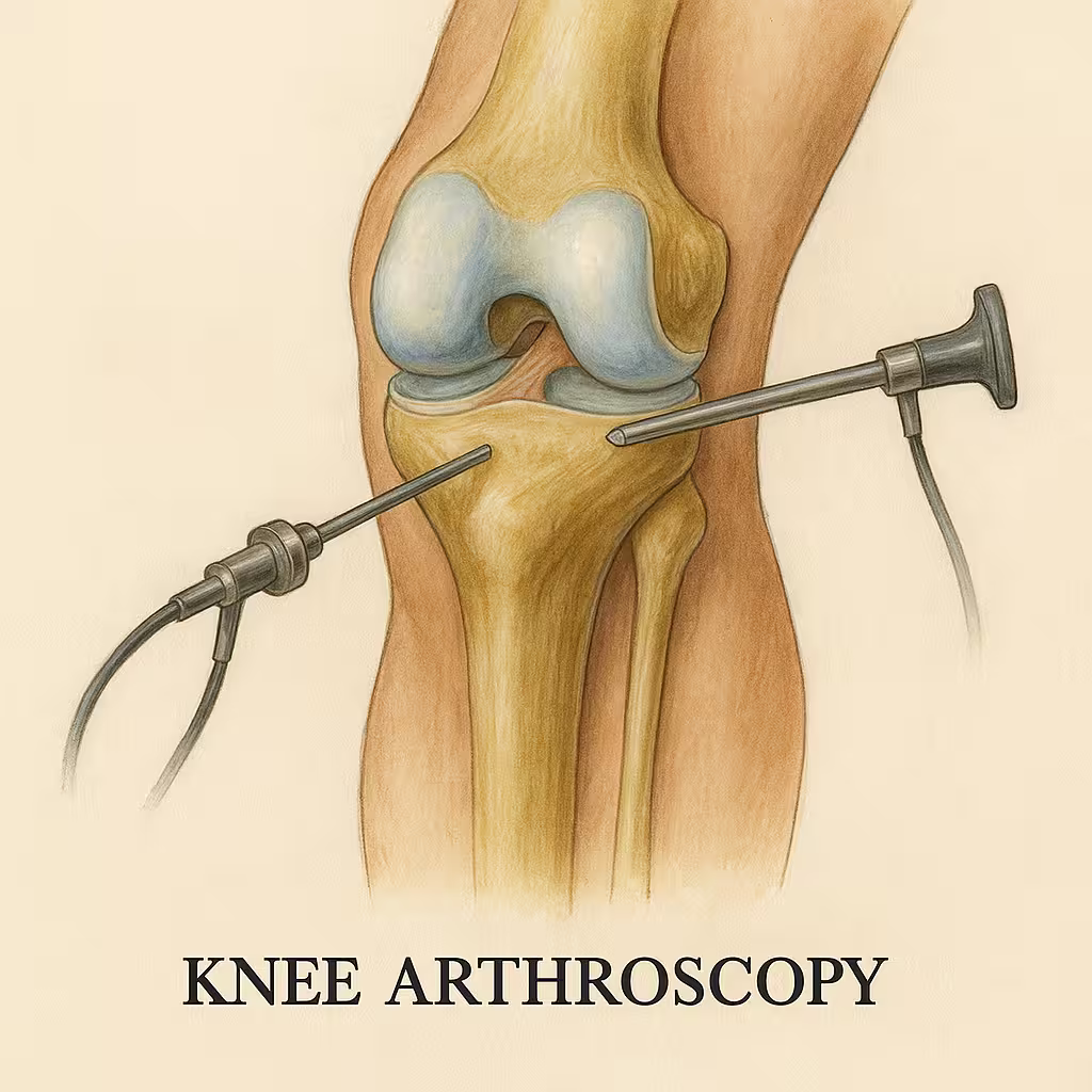 We perform knee arthroscopy to diagnose and treat intra-articular pathology such as meniscal tears, loose bodies, synovitis, chondral lesions and selected patellofemoral disorders. In appropriate cases, arthroscopy can alleviate mechanical symptoms (catching/locking) and reduce inflammation to help restore confident movement.